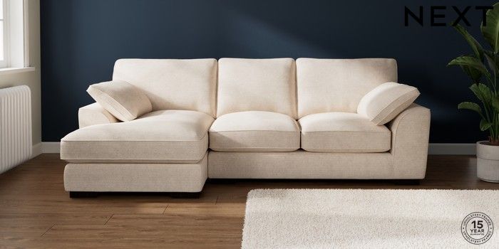 7.3.1 Buy Stamford Grand Relaxed Sit Medium Sofa Chaise - Left Hand Boucle Chenille Oyster Large Square Angle - Dark from the Laura Ashley online shop Click here to use our website with more accessibility support, for example screen readers
