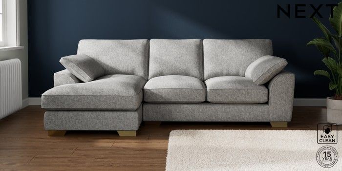 7.3.1 Buy Stamford Grand Relaxed Sit Medium Sofa Chaise - Left Hand Chunky Boucle Easy Clean Light Grey Large Square Angle - Brushed Brass from the Laura Ashley online shop Click here to use our website with more accessibility support, for example screen readers