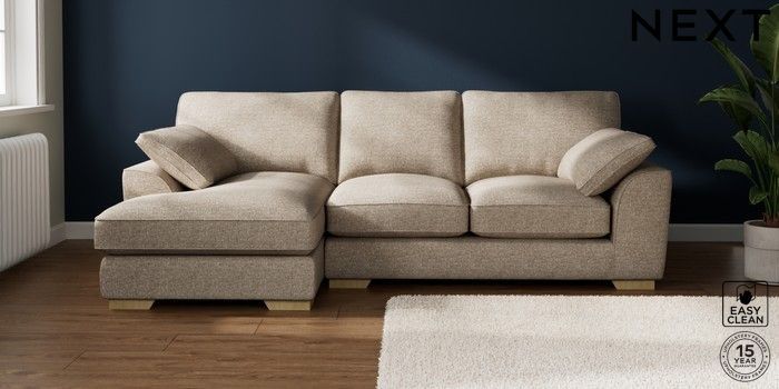 7.3.1 Buy Stamford Grand Relaxed Sit Medium Sofa Chaise - Left Hand Chunky Boucle Easy Clean Mid Natural Large Square Angle - Light from the Laura Ashley online shop Click here to use our website with more accessibility support, for example screen readers