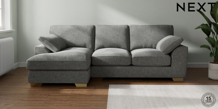 7.3.1 Buy Stamford Grand Relaxed Sit Medium Sofa Chaise - Left Hand Chunky Chenille Dark Grey Large Square Angle - Brushed Brass from the Laura Ashley online shop Click here to use our website with more accessibility support, for example screen readers