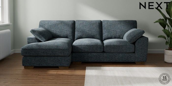 7.3.1 Buy Stamford Grand Relaxed Sit Medium Sofa Chaise - Left Hand Chunky Chenille Dark Navy Blue Large Square Angle - Mid from the Laura Ashley online shop Click here to use our website with more accessibility support, for example screen readers