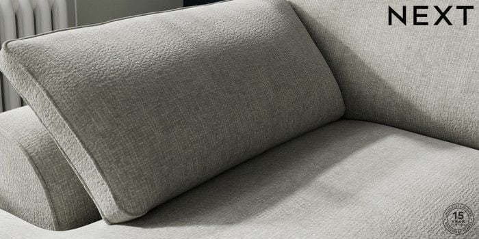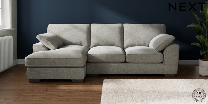 7.3.1 Buy Stamford Grand Relaxed Sit Medium Sofa Chaise - Left Hand Chunky Chenille Light Grey Large Square Angle - Gunmetal from the Laura Ashley online shop Click here to use our website with more accessibility support, for example screen readers