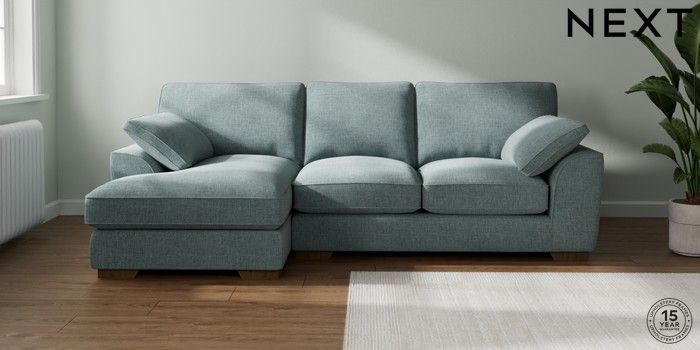 7.3.1 Buy Stamford Grand Relaxed Sit Medium Sofa Chaise - Left Hand Chunky Chenille Light Teal Green Large Square Angle - Mid from the Laura Ashley online shop Click here to use our website with more accessibility support, for example screen readers