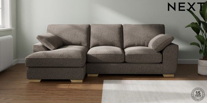 7.3.1 Buy Stamford Grand Relaxed Sit Medium Sofa Chaise - Left Hand Chunky Chenille Mink Brown Large Square Angle - Light from the Laura Ashley online shop