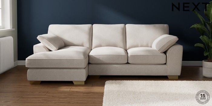 7.3.1 Buy Stamford Grand Relaxed Sit Medium Sofa Chaise - Left Hand Chunky Chenille Oyster Large Square Angle - Brushed Brass from the Laura Ashley online shop Click here to use our website with more accessibility support, for example screen readers