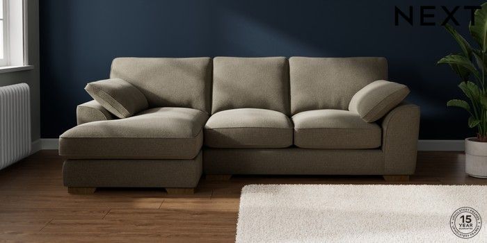 7.3.1 Buy Stamford Grand Relaxed Sit Medium Sofa Chaise - Left Hand Chunky Marl Light Olive Green Large Square Angle - Mid from the Laura Ashley online shop Click here to use our website with more accessibility support, for example screen readers