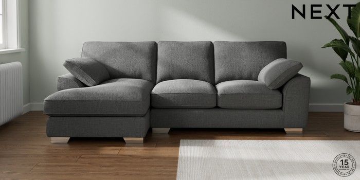 7.3.1 Buy Stamford Grand Relaxed Sit Medium Sofa Chaise - Left Hand Chunky Texture Dark Grey Large Square Angle - Chrome Metal from the Laura Ashley online shop Click here to use our website with more accessibility support, for example screen readers