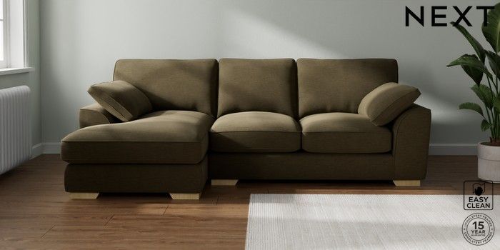 7.3.1 Buy Stamford Grand Relaxed Sit Medium Sofa Chaise - Left Hand Fine Chenille Easy Clean Dark Moss Green Large Square Angle - Light from the Laura Ashley online shop Click here to use our website with more accessibility support, for example screen readers