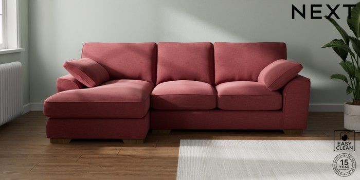 7.3.1 Buy Stamford Grand Relaxed Sit Medium Sofa Chaise - Left Hand Fine Chenille Easy Clean Mid Pink Large Square Angle - Mid from the Laura Ashley online shop Click here to use our website with more accessibility support, for example screen readers