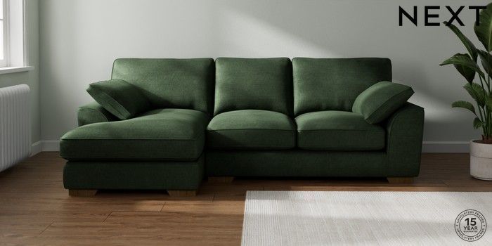 7.3.1 Buy Stamford Grand Relaxed Sit Medium Sofa Chaise - Left Hand Luxe Chenille Dark Green Large Square Angle - Mid from the Laura Ashley online shop Click here to use our website with more accessibility support, for example screen readers