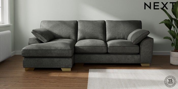 7.3.1 Buy Stamford Grand Relaxed Sit Medium Sofa Chaise - Left Hand Plush Chenille Dark Grey Large Square Angle - Brushed Brass from the Laura Ashley online shop Click here to use our website with more accessibility support, for example screen readers
