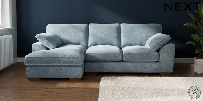 7.3.1 Buy Stamford Grand Relaxed Sit Medium Sofa Chaise - Left Hand Plush Chenille Light Blue Large Square Angle - Mid from the Laura Ashley online shop