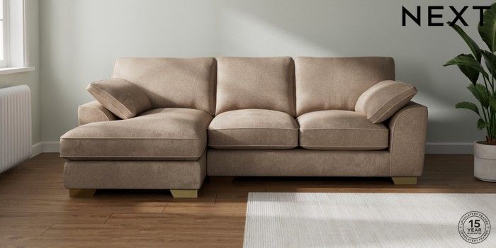 7.3.1 Buy Stamford Grand Relaxed Sit Medium Sofa Chaise - Left Hand Plush Chenille Mid Natural Large Square Angle - Brushed Brass from the Laura Ashley online shop Click here to use our website with more accessibility support, for example screen readers