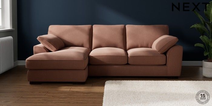 7.3.1 Buy Stamford Grand Relaxed Sit Medium Sofa Chaise - Left Hand Relaxed Linen Look Light Rust Brown Large Square Angle - Dark from the Laura Ashley online shop