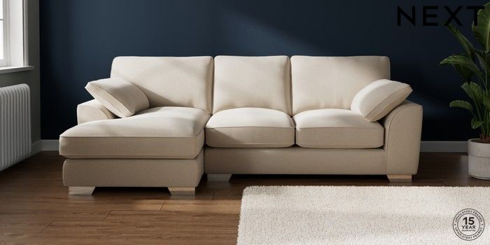 7.3.1 Buy Stamford Grand Relaxed Sit Medium Sofa Chaise - Left Hand Studio Chenille Oyster Large Square Angle - Chrome Metal from the Laura Ashley online shop Click here to use our website with more accessibility support, for example screen readers