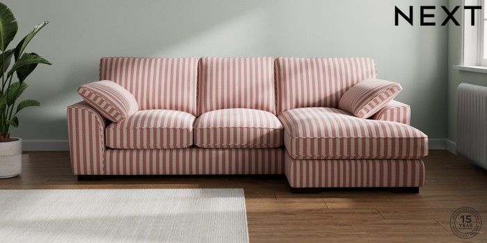 7.3.1 Buy Stamford Grand Relaxed Sit Medium Sofa Chaise - Right Hand Bold Chenille Stripe Dark Pink Large Square Angle - Dark from the Laura Ashley online shop Click here to use our website with more accessibility support, for example screen readers