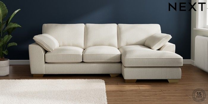 7.3.1 Buy Stamford Grand Relaxed Sit Medium Sofa Chaise - Right Hand Chenille Stripe Moss Green Large Square Angle - Brushed Brass from the Laura Ashley online shop Click here to use our website with more accessibility support, for example screen readers