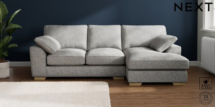 7.3.1 Buy Stamford Grand Relaxed Sit Medium Sofa Chaise - Right Hand Chunky Boucle Easy Clean Light Grey Large Square Angle - Light from the Laura Ashley online shop