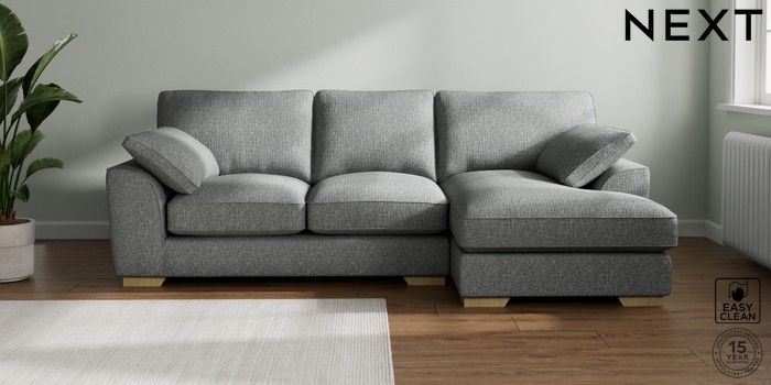 7.3.1 Buy Stamford Grand Relaxed Sit Medium Sofa Chaise - Right Hand Chunky Boucle Easy Clean Mid Grey Large Square Angle - Light from the Laura Ashley online shop Click here to use our website with more accessibility support, for example screen readers