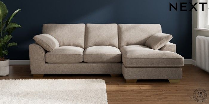 7.3.1 Buy Stamford Grand Relaxed Sit Medium Sofa Chaise - Right Hand Chunky Chenille Light Dove Large Square Angle - Brushed Brass from the Laura Ashley online shop Click here to use our website with more accessibility support, for example screen readers