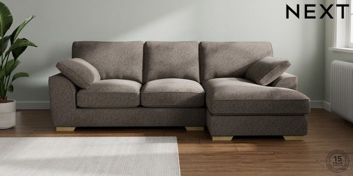 7.3.1 Buy Stamford Grand Relaxed Sit Medium Sofa Chaise - Right Hand Chunky Chenille Mink Brown Large Square Angle - Light from the Laura Ashley online shop Click here to use our website with more accessibility support, for example screen readers