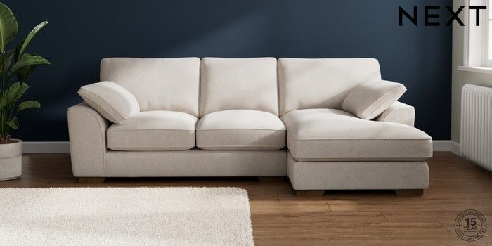 7.3.1 Buy Stamford Grand Relaxed Sit Medium Sofa Chaise - Right Hand Chunky Chenille Oyster Large Square Angle - Mid from the Laura Ashley online shop Click here to use our website with more accessibility support, for example screen readers