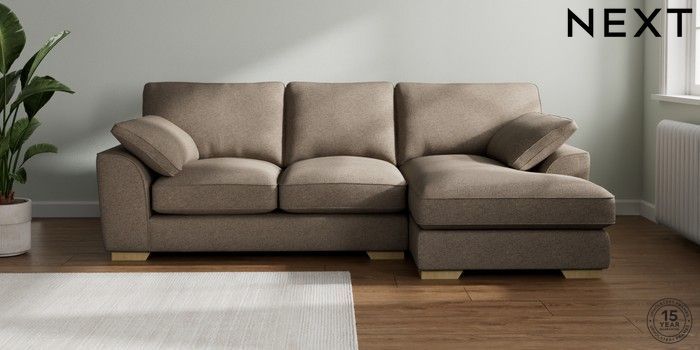 7.3.1 Buy Stamford Grand Relaxed Sit Medium Sofa Chaise - Right Hand Chunky Weave Dark Natural Large Square Angle - Light from the Laura Ashley online shop Click here to use our website with more accessibility support, for example screen readers