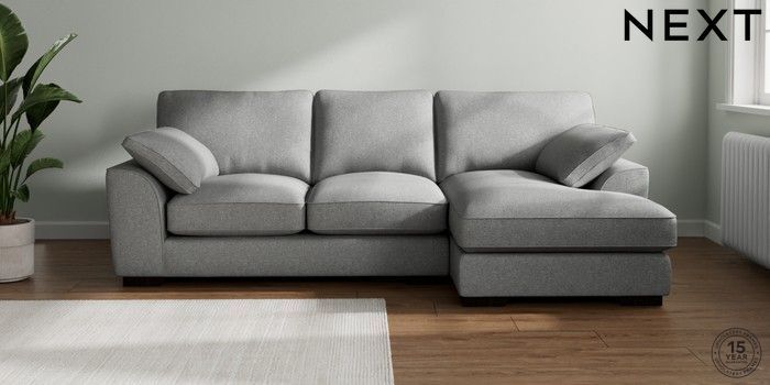 7.3.1 Buy Stamford Grand Relaxed Sit Medium Sofa Chaise - Right Hand Chunky Weave Mid Grey Large Square Angle - Dark from the Laura Ashley online shop Click here to use our website with more accessibility support, for example screen readers