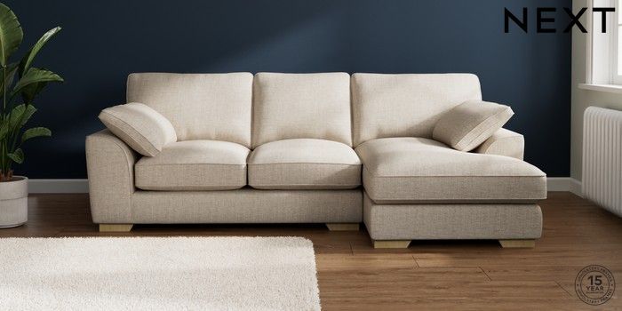 7.3.1 Buy Stamford Grand Relaxed Sit Medium Sofa Chaise - Right Hand Chunky Weave Mid Natural Large Square Angle - Light from the Laura Ashley online shop