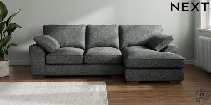 7.3.1 Buy Stamford Grand Relaxed Sit Medium Sofa Chaise - Right Hand Cotswold Chenille Dark Grey Large Square Angle - Mid from the Laura Ashley online shop Click here to use our website with more accessibility support, for example screen readers