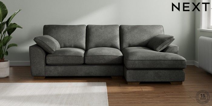 7.3.1 Buy Stamford Grand Relaxed Sit Medium Sofa Chaise - Right Hand Plush Chenille Dark Grey Large Square Angle - Mid from the Laura Ashley online shop