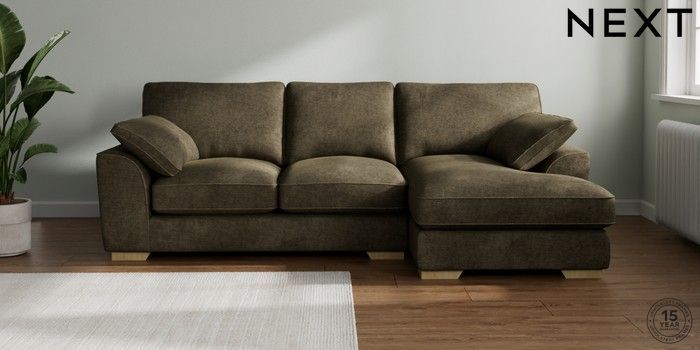 7.3.1 Buy Stamford Grand Relaxed Sit Medium Sofa Chaise - Right Hand Plush Chenille Moss Green Large Square Angle - Light from the Laura Ashley online shop