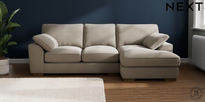 7.3.1 Buy Stamford Grand Relaxed Sit Medium Sofa Chaise - Right Hand Ripple Chenille Light Natural Large Square Angle - Mid from the Laura Ashley online shop Click here to use our website with more accessibility support, for example screen readers