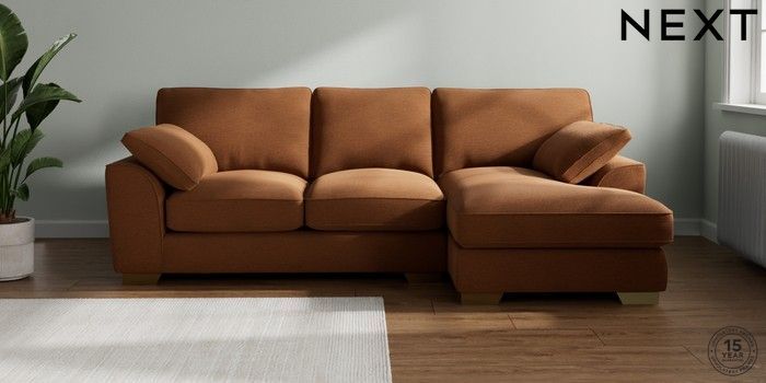 7.3.1 Buy Stamford Grand Relaxed Sit Medium Sofa Chaise - Right Hand Ripple Chenille Mid Rust Brown Large Square Angle - Brushed Brass from the Laura Ashley online shop Click here to use our website with more accessibility support, for example screen readers