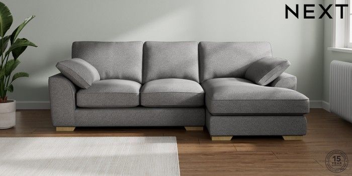 7.3.1 Buy Stamford Grand Relaxed Sit Medium Sofa Chaise - Right Hand Studio Chenille Mid Grey Large Square Angle - Light from the Laura Ashley online shop