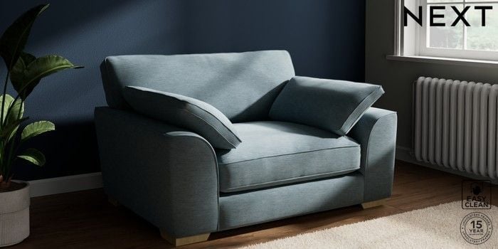 7.3.1 Buy Stamford Grand Relaxed Sit Snuggle Fine Chenille Easy Clean Mid Blue Large Square Angle - Light from the Laura Ashley online shop