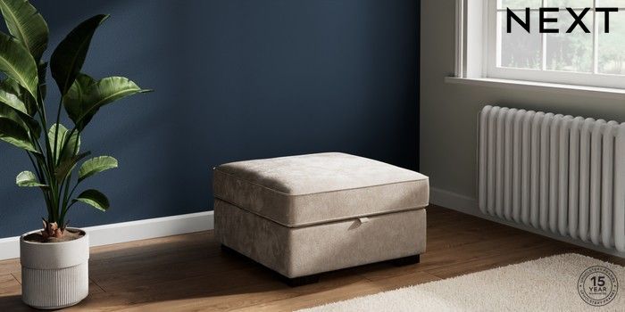 7.3.1 Buy Stamford Grand Relaxed Sit Storage Footstool Distressed Velour Mid Natural Square Angle - Dark from the Laura Ashley online shop Click here to use our website with more accessibility support, for example screen readers