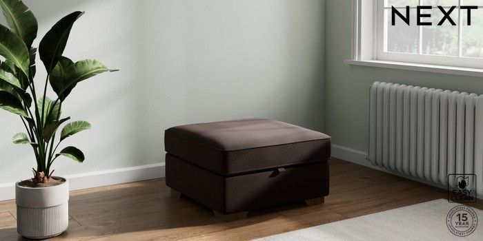 7.3.1 Buy Stamford Grand Relaxed Sit Storage Footstool Fine Chenille Easy Clean Chocolate Brown Square Angle - Mid from the Laura Ashley online shop Click here to use our website with more accessibility support, for example screen readers