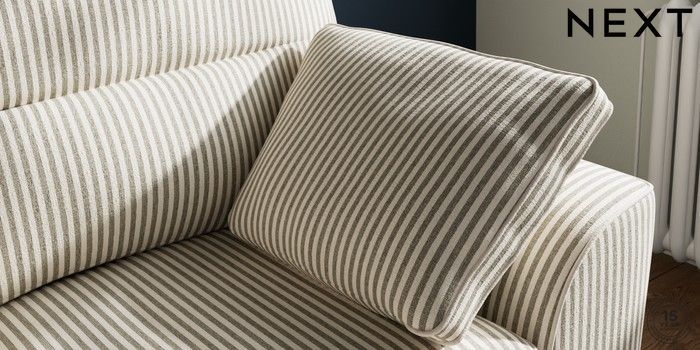 7.3.1 Buy Stamford Highback 2 Seater Small Sofa Chenille Stripe Moss Green Large Square Angle - Mid from the Laura Ashley online shop Click here to use our website with more accessibility support, for example screen readers