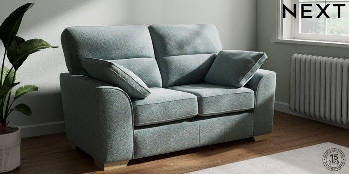 7.2.6 Buy Stamford Highback 2 Seater Small Sofa Chunky Marl Mid Blue Large Square Angle - Light from the Laura Ashley online shop Click here to use our website with more accessibility support, for example screen readers