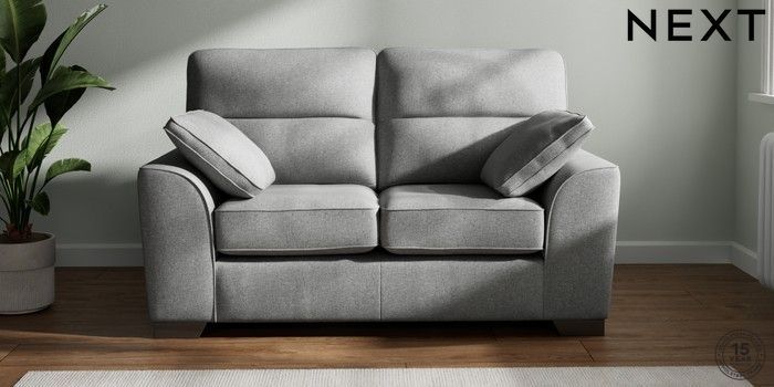 6.12.1 Buy Stamford Highback 2 Seater Small Sofa Chunky Weave Mid Grey Large Square Angle - Gunmetal from the Laura Ashley online shop Click here to use our website with more accessibility support, for example screen readers