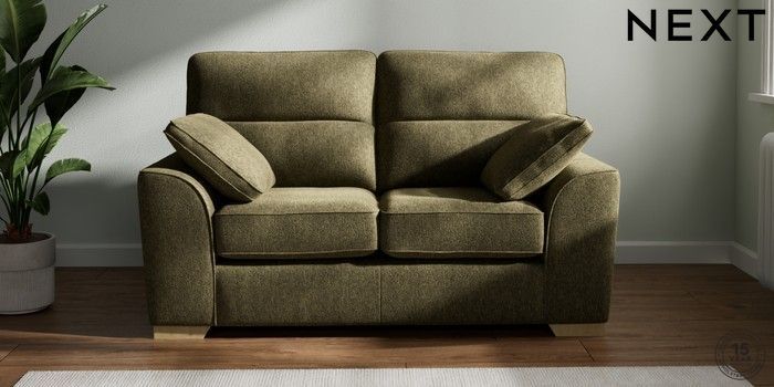7.2.6 Buy Stamford Highback 2 Seater Small Sofa Cotswold Chenille Dark Green Large Square Angle - Light from the Laura Ashley online shop Click here to use our website with more accessibility support, for example screen readers