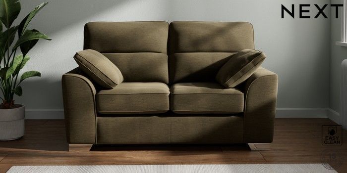 7.2.6 Buy Stamford Highback 2 Seater Small Sofa Fine Chenille Easy Clean Dark Moss Green Large Square Angle - Chrome Metal from the Laura Ashley online shop Click here to use our website with more accessibility support, for example screen readers