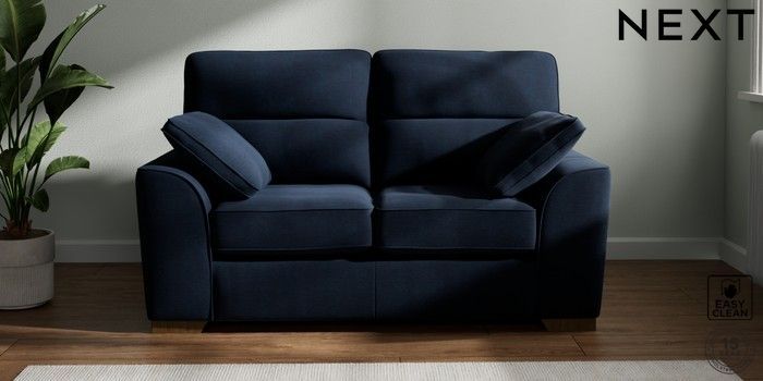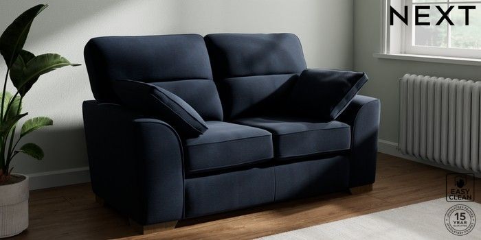 7.2.6 Buy Stamford Highback 2 Seater Small Sofa Fine Chenille Easy Clean Dark Navy Blue Large Square Angle - Mid from the Laura Ashley online shop Click here to use our website with more accessibility support, for example screen readers