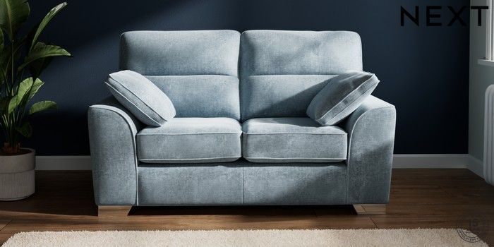 7.2.6 Buy Stamford Highback 2 Seater Small Sofa Plush Chenille Light Blue Large Square Angle - Chrome Metal from the Laura Ashley online shop Click here to use our website with more accessibility support, for example screen readers