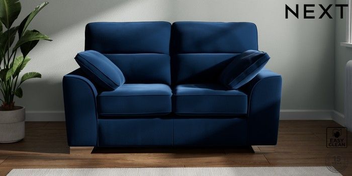 7.2.6 Buy Stamford Highback 2 Seater Small Sofa Plush Velvet Easy Clean Navy Blue Large Square Angle - Chrome Metal from the Laura Ashley online shop Click here to use our website with more accessibility support, for example screen readers