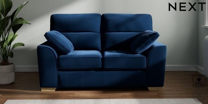 7.2.6 Buy Stamford Highback 2 Seater Small Sofa Plush Velvet Easy Clean Navy Blue Large Square Angle - Light from the Laura Ashley online shop Click here to use our website with more accessibility support, for example screen readers