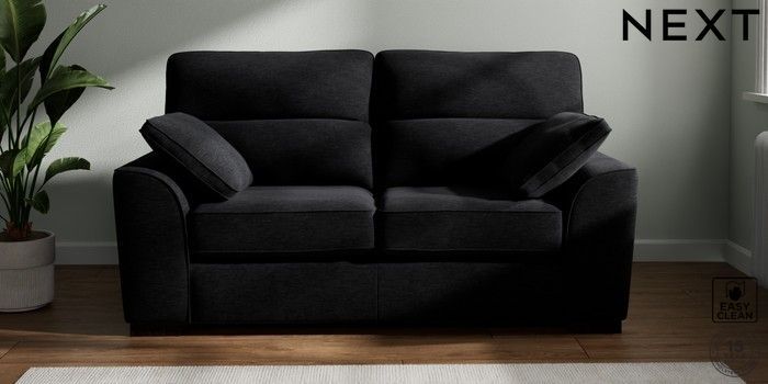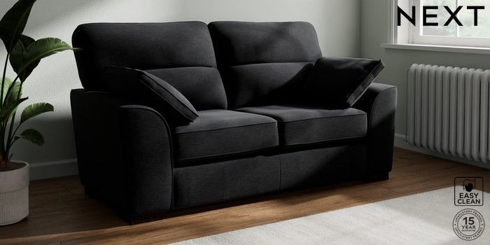 7.2.6 Buy Stamford Highback 2 Seater Sofa Fine Chenille Easy Clean Black Large Square Angle - Dark from the Laura Ashley online shop Click here to use our website with more accessibility support, for example screen readers