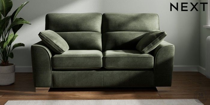 6.12.1 Buy Stamford Highback 2 Seater Sofa Luxe Chenille Mid Green Large Square Angle - Chrome Metal from the Laura Ashley online shop Click here to use our website with more accessibility support, for example screen readers