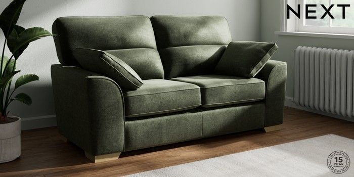 7.2.6 Buy Stamford Highback 2 Seater Sofa Luxe Chenille Mid Green Large Square Angle - Light from the Laura Ashley online shop Click here to use our website with more accessibility support, for example screen readers